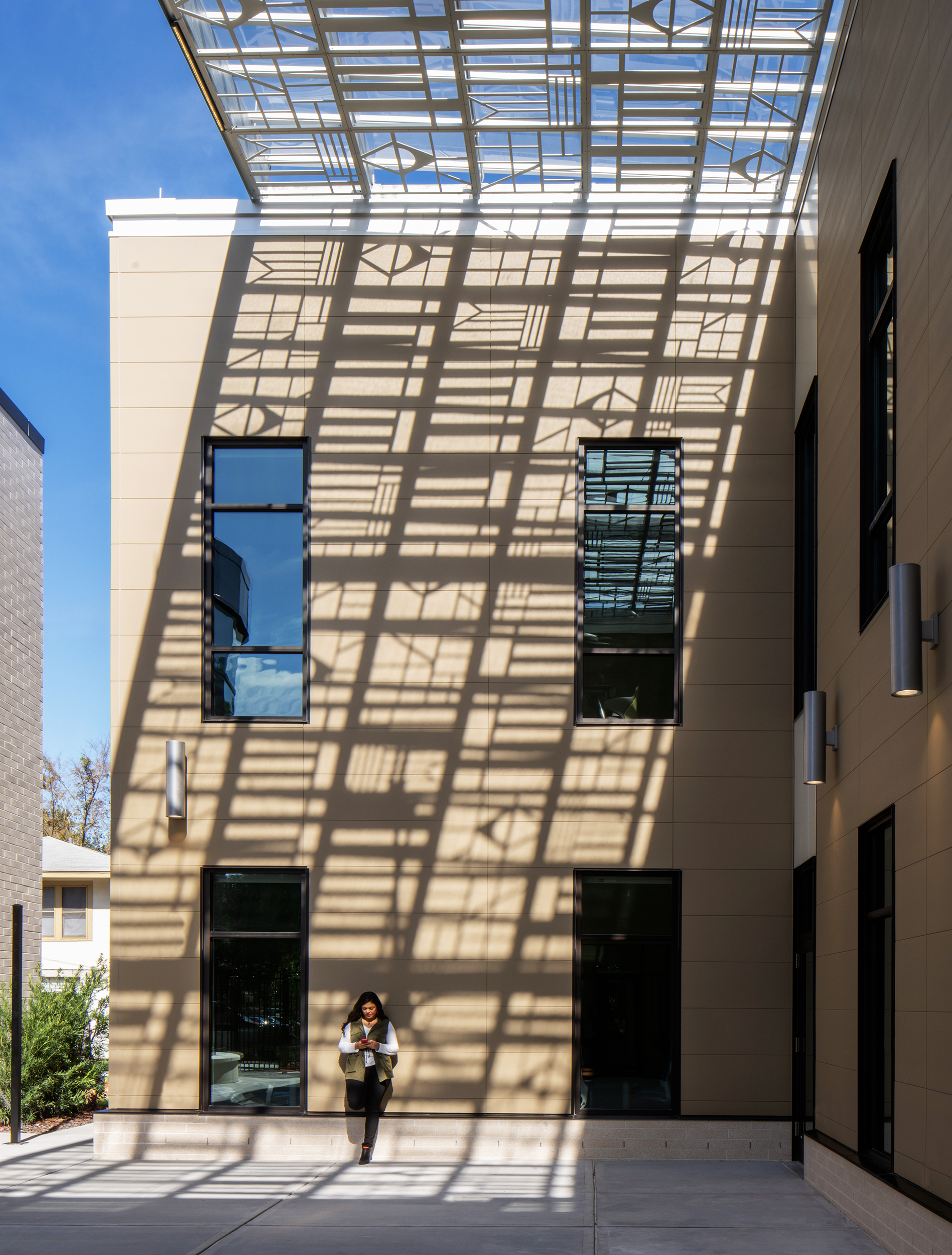 The former Institutes, two Victorian houses built in the 1920s, were purchased by the University in 1954 and designated to the IBC and IHLC in 1971 and 1994, respectively. With this new construction, the square footage for each building was more than doubled. The project involved constructing two LEED v4 Gold buildings totaling 13,230 GSF, each thoughtfully designed to incorporate culturally significant elements. Each building includes offices, event space, study rooms, a warming kitchen, and social spaces. The work required extensive site improvements, underground utilities, tree mitigation, telecommunications, furniture, equipment, and artwork.
